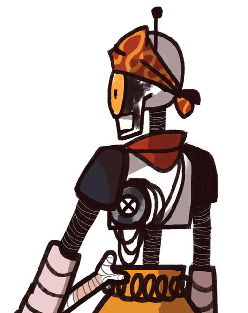 A delivery driver by the nickname of Roo. He's a Horror Sans, but his timeline was erased before his skull was broken. Has a habit of regularly breaking his moped. Enjoys BBQ.